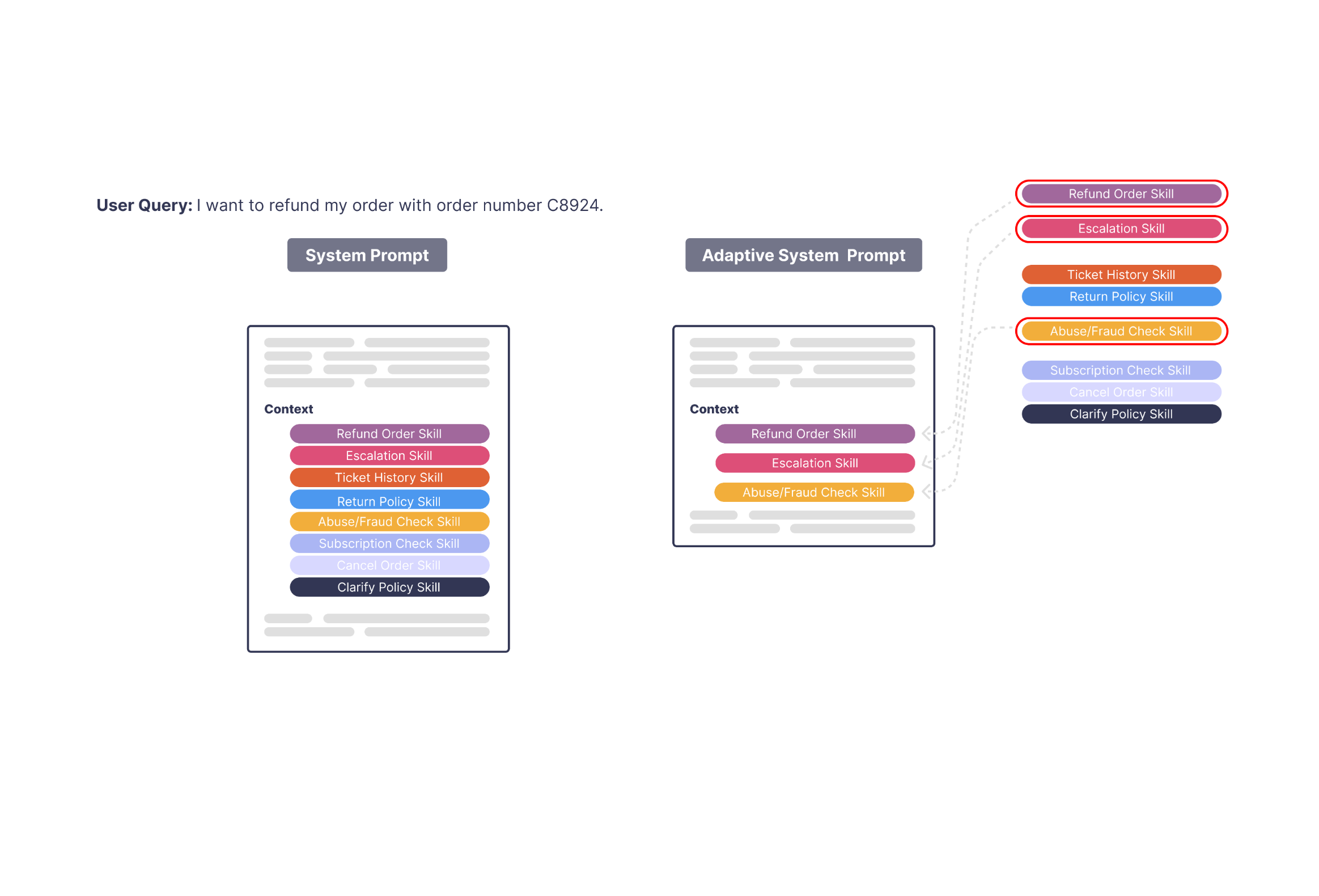 The algorithm learned to swap in a much tighter context slice—for this case, payment types and pricing rules—instead of the entire financial history.