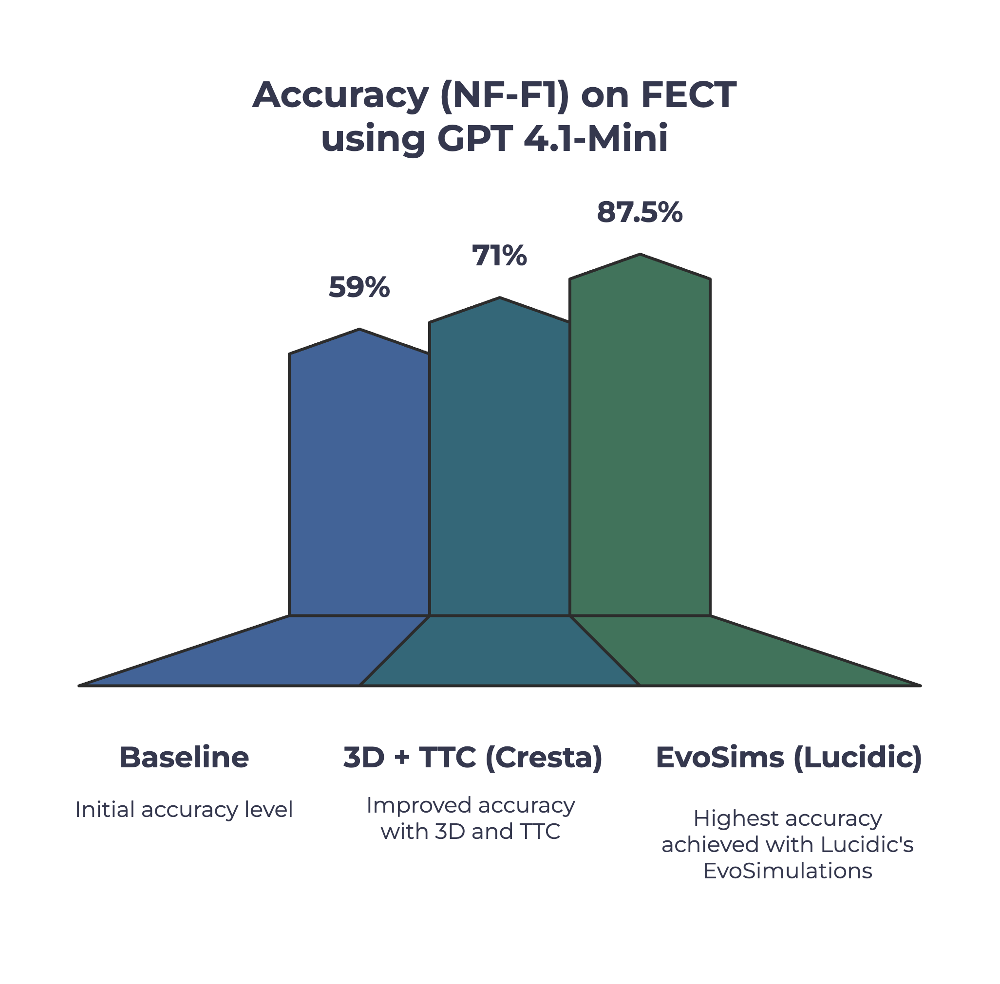 Using Lucidic AI's auto-improvement algorithms (EvoSims), we achieved what took them months in less than 24 hours. We improved their baseline of 59% and increased it to 87.5% accuracy.